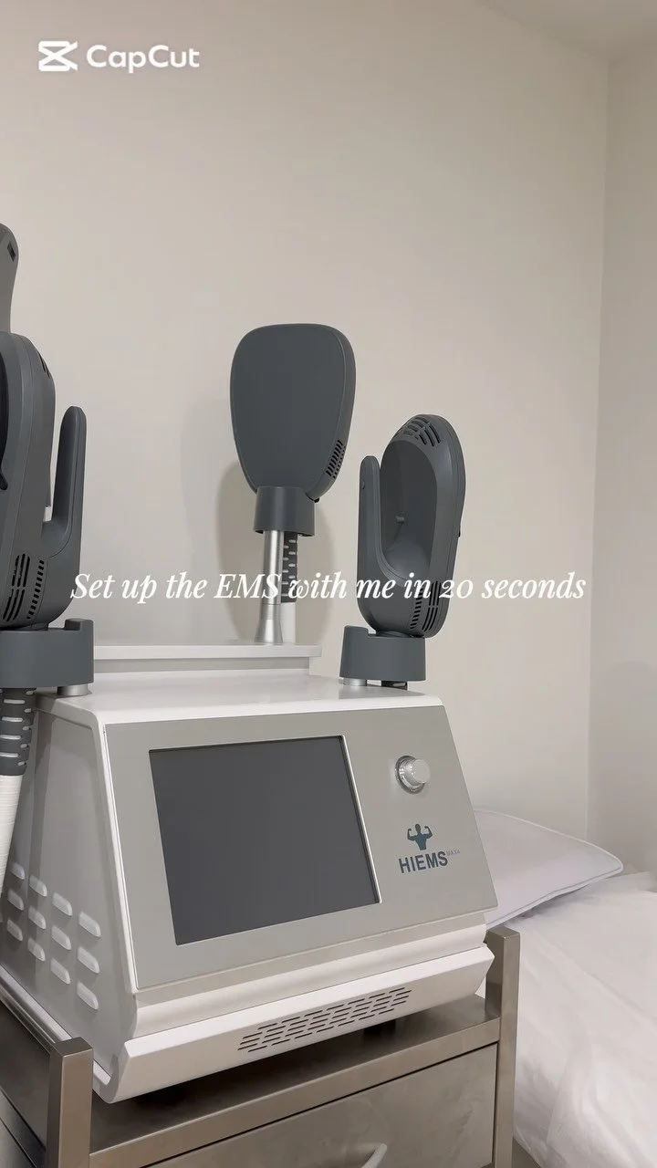 EMS uses high-intensity electromagnetic energy to induce supra-maximal contractions, equivalent to 20,000 sit-ups in 30 minutes, strengthening and toning the abdomen and buttocks.